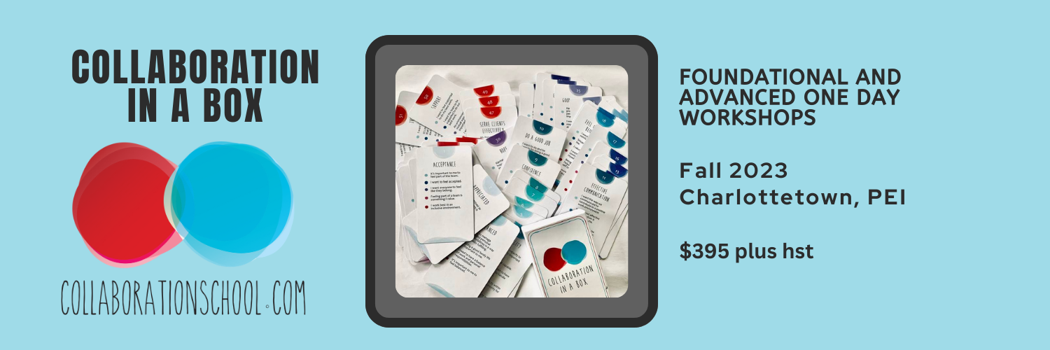 And I’ve decided to pull all of those many uses into a series of one day workshops to teach you how to use the Collaboration in a Box card deck tool to: